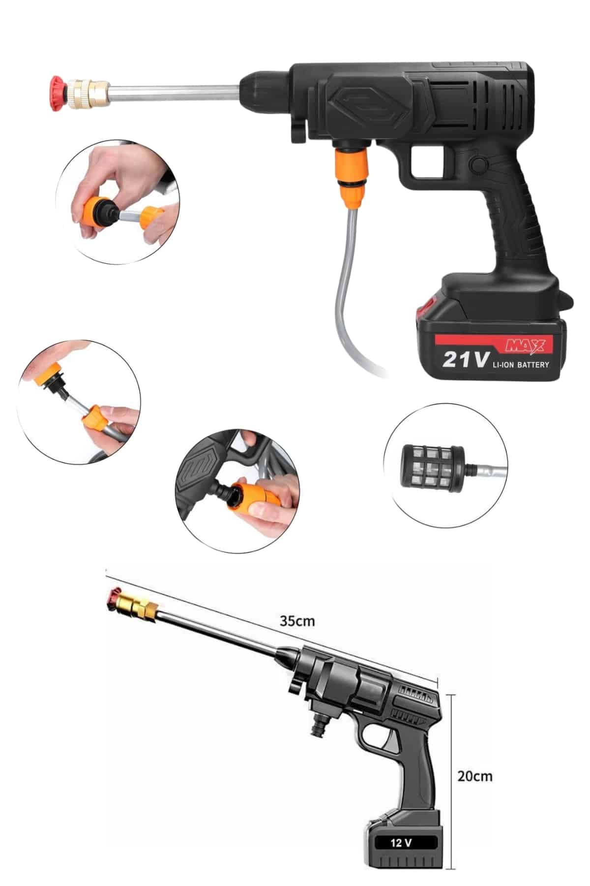 Taşınabilir Akülü Yıkama Makinesi - Güçlü Temizlik, Kolay Kullanım Güçlü performansı ve taşınabilirliğiyle dikkat çeken Akülü Yıkama Makinesi, evde ve dış mekanlarda temizlik ihtiyaçlarınızı hızlı ve verimli bir şekilde karşılamak için ideal bir çözümdür. 21V XR Li-Ion bataryası, kömürsüz motoru ve uzun süreli çalışma kapasitesi ile mükemmel temizlik sonuçları sunar. Bu cihaz, araba yıkamadan bahçe temizliğine kadar çeşitli temizlik işlemlerini kolayca gerçekleştirmenizi sağlar. Etkili Temizlik ve Güçlü Performans 1500mAh çift aküsü ve 5 pilli dahili bataryası ile uzun süreli kullanım sağlar. 1.7 Mpa'lık yüksek tepe basıncı, en inatçı kirleri bile rahatlıkla temizlemenize olanak tanır. 3.2 L/dak su çıkışı sayesinde, her kullanımda etkili ve hızlı temizlik sağlarsınız. Metal pompa silindiri, uzun ömürlü ve dayanıklı bir kullanım için tasarlanmıştır, böylece cihaz uzun süre performans kaybı yaşamaz. Hızlı Şarj ve Kolay Kullanım 60 dakikalık hızlı şarj süresi ile her zaman kullanıma hazırdır. 2 kg'lık hafif tasarımı, taşımasını ve yönlendirilmesini son derece kolaylaştırır. Ergonomik yapısı sayesinde her yaştan kullanıcı tarafından rahatlıkla kullanılabilir. Araba yıkama, bisiklet temizliği veya evde bahçe sulama gibi farklı kullanım alanlarında da size büyük kolaylık sağlar. Dayanıklı ve Uzun Süreli Kullanım Ürün, 2 yıl garanti süresiyle birlikte gelir, böylece uzun vadeli kullanımda güvenli bir deneyim sunar. Hafif yapısı, güçlü performansı ve yüksek dayanıklılığı ile her türlü temizlik işinizi zahmetsizce tamamlamanızı sağlar. Hem evde hem de dış mekanlarda kullanım için mükemmel bir tercihtir.Ürün Markası: Lisinya