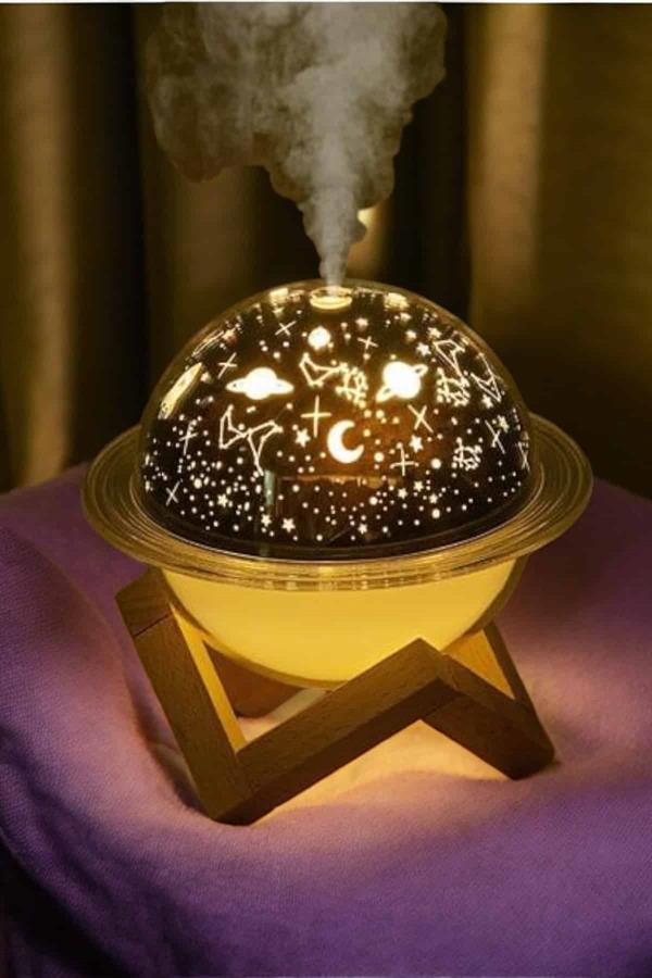 USB Projeksiyon Gece Lambası ve Hava Nemlendirici, kuru havanın zararlı etkilerini ortadan kaldırmak ve yaşam alanınızda sağlıklı bir atmosfer yaratmak için tasarlanmıştır. Bu cihaz, havayı nemlendirerek cilt kuruluğu, boğaz tahrişi ve öksürük gibi problemleri önler, nefes almayı kolaylaştırır ve cildinize ihtiyacı olan nemi sağlar. Şık ve zarif tasarımı, odanızın dekorasyonunu tamamlayan modern bir dokunuş sunar.Projeksiyon özelliği, cihazın sadece bir hava nemlendirici değil, aynı zamanda etkileyici bir gece lambası olarak da kullanılmasını sağlar. Odanıza huzurlu bir ambiyans sağlayan bu projeksiyon, rahatlamanıza ve stresinizi atmanıza yardımcı olur. Su haznesine ekleyebileceğiniz esans veya parfümlerle, yaşam alanınızı hoş kokularla doldurabilir ve aromaterapi etkisinden faydalanabilirsiniz. USB bağlantı özelliği, cihazın kolaylıkla taşınabilmesini ve farklı güç kaynaklarından enerji almasını sağlar.Bu nemlendirici cihaz, hem sağlığınızı destekler hem de estetik ihtiyaçlarınızı karşılar. Kompakt boyutları, kolay kullanımı ve fonksiyonel özellikleriyle gün boyu kaliteli hava solumanızı sağlar. Gece daha iyi bir uyku için kuru havanın zararlı etkilerini ortadan kaldırır, cildinizi korur ve yaşam alanınızı güzelleştirir.Ürün Markası: Lisinya