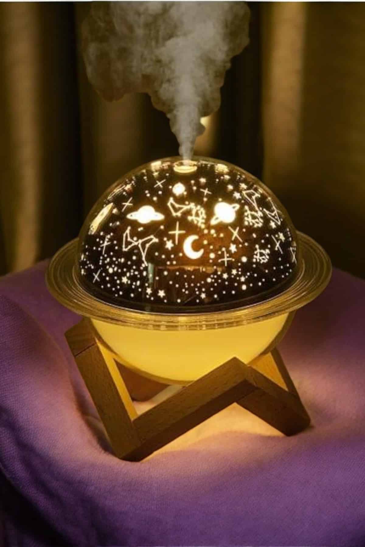 USB Projeksiyon Gece Lambası ve Hava Nemlendirici, kuru havanın zararlı etkilerini ortadan kaldırmak ve yaşam alanınızda sağlıklı bir atmosfer yaratmak için tasarlanmıştır. Bu cihaz, havayı nemlendirerek cilt kuruluğu, boğaz tahrişi ve öksürük gibi problemleri önler, nefes almayı kolaylaştırır ve cildinize ihtiyacı olan nemi sağlar. Şık ve zarif tasarımı, odanızın dekorasyonunu tamamlayan modern bir dokunuş sunar. Projeksiyon özelliği, cihazın sadece bir hava nemlendirici değil, aynı zamanda etkileyici bir gece lambası olarak da kullanılmasını sağlar. Odanıza huzurlu bir ambiyans sağlayan bu projeksiyon, rahatlamanıza ve stresinizi atmanıza yardımcı olur. Su haznesine ekleyebileceğiniz esans veya parfümlerle, yaşam alanınızı hoş kokularla doldurabilir ve aromaterapi etkisinden faydalanabilirsiniz. USB bağlantı özelliği, cihazın kolaylıkla taşınabilmesini ve farklı güç kaynaklarından enerji almasını sağlar. Bu nemlendirici cihaz, hem sağlığınızı destekler hem de estetik ihtiyaçlarınızı karşılar. Kompakt boyutları, kolay kullanımı ve fonksiyonel özellikleriyle gün boyu kaliteli hava solumanızı sağlar. Gece daha iyi bir uyku için kuru havanın zararlı etkilerini ortadan kaldırır, cildinizi korur ve yaşam alanınızı güzelleştirir.Ürün Markası: Lisinya