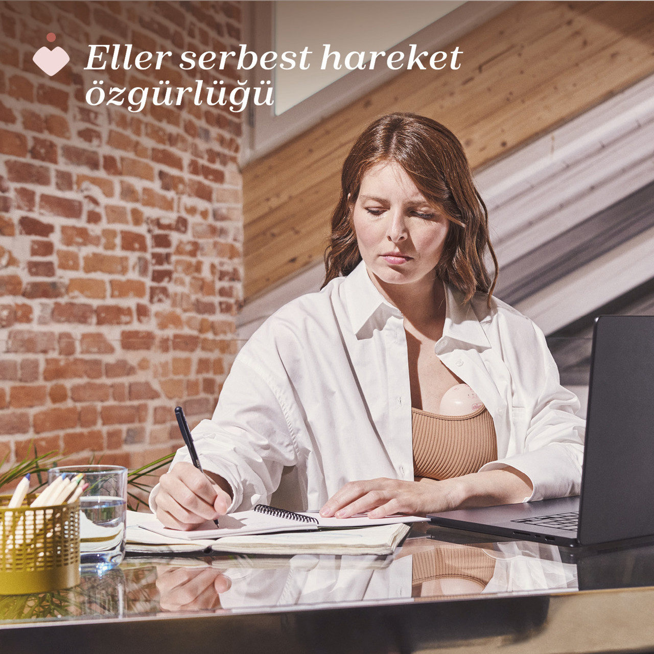 Chicco taşınabilir göğüs pompası, kablosuz tasarımı sayesinde sütyenin içine rahatlıkla yerleştirilebilir.