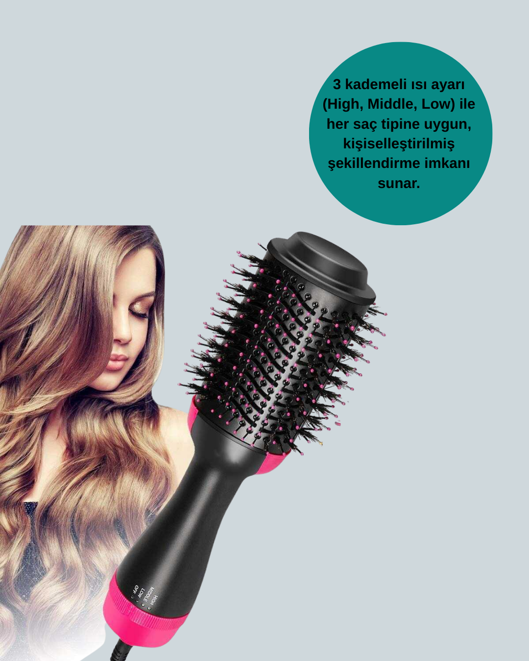 Profesyonel saç şekillendirme deneyimini evinize getiren bu fönlü fırça, tek adımda kurutma ve şekillendirme imkânı sunar. Oval fırça tasarımı, kökten uca hacim kazandırır ve saçın doğal yapısını bozmadan pürüzsüz bir bitiş sağlar.Negatif iyon teknolojisi, saç tellerinde statik elektrik oluşumunu engeller, nem dengesini koruyarak parlak ve sağlıklı bir görünüm verir. 3 farklı ısı modu ve soğuk hava fonksiyonu ile her saç tipine uygundur. Hafif ve ergonomik yapısıyla kolay kullanım sağlar.Ürün Özellikleri: Güç: 1200W 3 ısı kademesi Oval fırça 2,5 m dönebilen kabloZaman kazandıran, pratik ve etkili bir saç bakım aracıdır.Ürün Markası: Lisinya