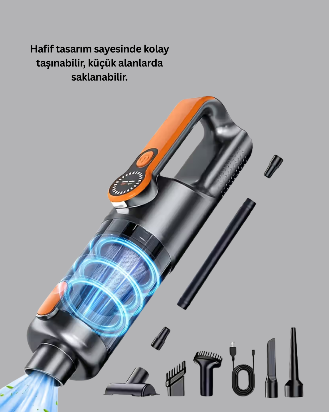 Kompakt tasarımı ve güçlü emiş gücüyle bu şarjlı el süpürgesi, günlük temizlik işlerini hızlı ve etkili şekilde yapabilmeniz için geliştirilmiştir. Kuru veya sıvı fark etmeksizin toz, kırıntı, saç ve evcil hayvan tüylerini kolayca temizler. Paketle birlikte gelen numaratör hediyesi, özellikle işyerinde ve evde düzen oluşturmak isteyenler için oldukça kullanışlıdır. USB Type-C hızlı şarj özelliğiyle cihaz tam dolumdan sonra 25–30 dakika kesintisiz çalışabilir. Kablosuz kullanım özgürlüğü, dar alanlara ve köşelere ulaşmayı daha kolay hale getirir. Beraberinde gelen 5 farklı başlık, kullanım alanını genişletir. Dar uçlu başlık ince bölgeler için tasarlanmışken, fırçalı başlık hassas yüzeylerde kullanılır. Geniş başlık zemin temizliğinde etkilidir; yuvarlak başlık köşe bölgelerde üstün sonuç verir. Esnek hortum ise ulaşılması zor olan alanlarda rahatlık sunar. Yıkanabilir toz haznesi hijyen sağlar ve uzun süreli kullanım imkânı sunar. Hafif tasarımı sayesinde taşıması kolaydır ve çekmece, torpido veya dolapta minimum yer kaplar.Ürün Markası: Lisinya