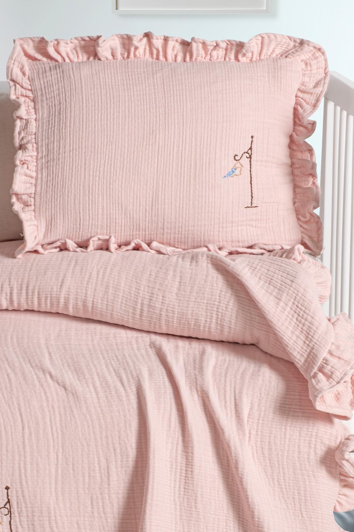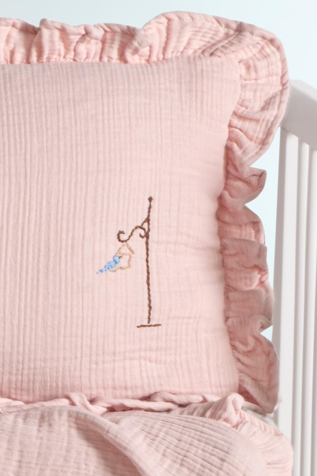 ✔ Nakışlı Fırfırlı Müslin Yastık Kılıfı – 35x45 cm (1 Adet)
