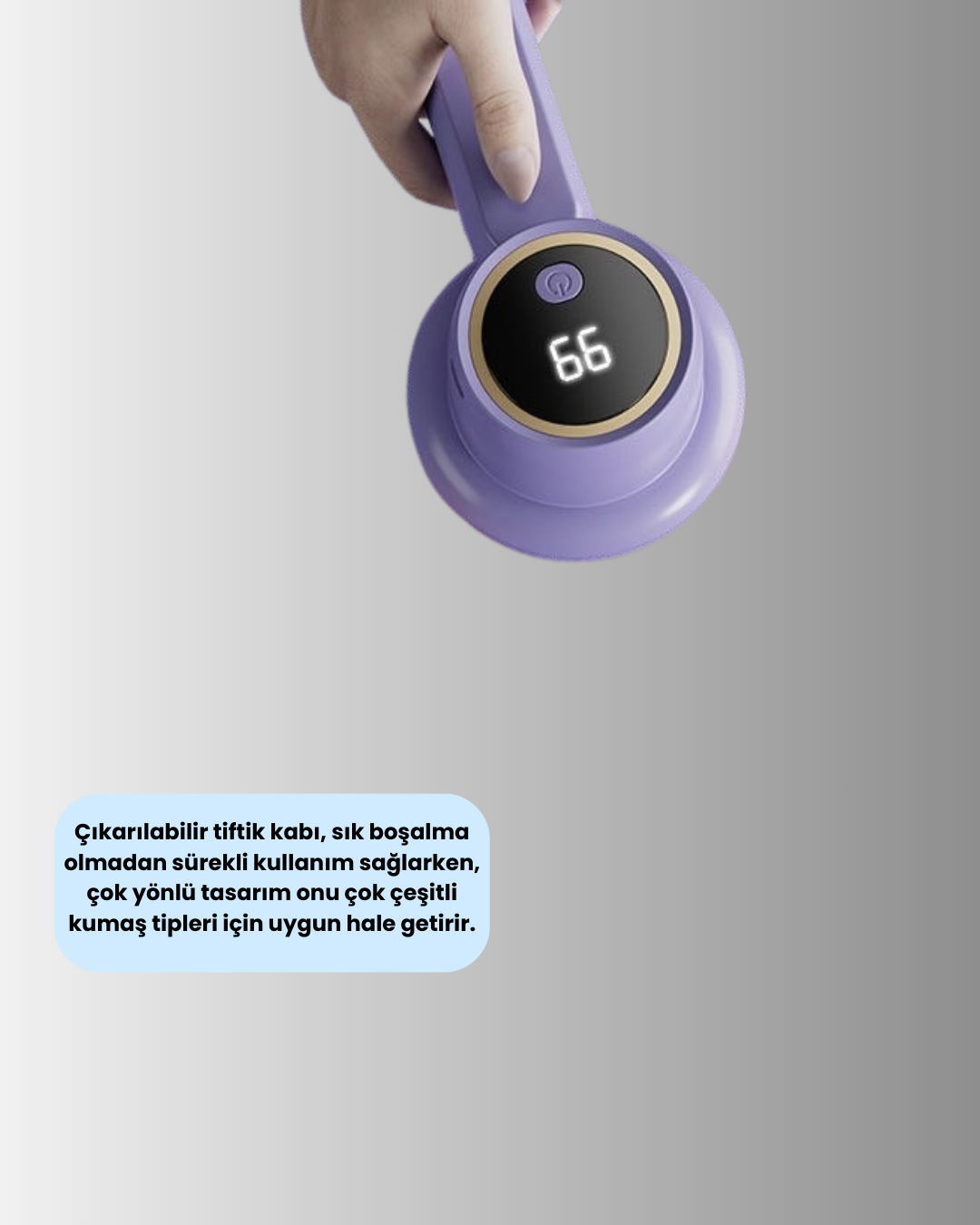 Kumaş bakım makinesi, tüylenme ve pürüzlenme problemlerini kısa sürede gidermeye yardımcı olur. Büyük başlık yapısı, hızlı ve etkili temizlik sağlar. Kablosuz kullanım avantajı, ürünü pratik hale getirir. Düzenli kullanımda giysilerin ve ev tekstillerinin daha bakımlı görünmesine katkı sağlar. Dayanıklı gövdesi ile güvenli kullanım sunar.Ürün Markası: Lisinya