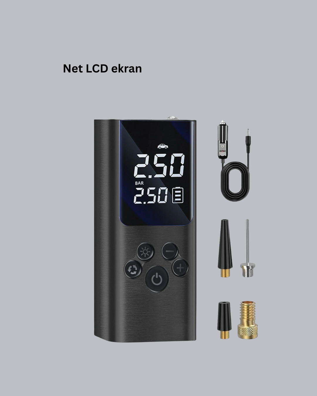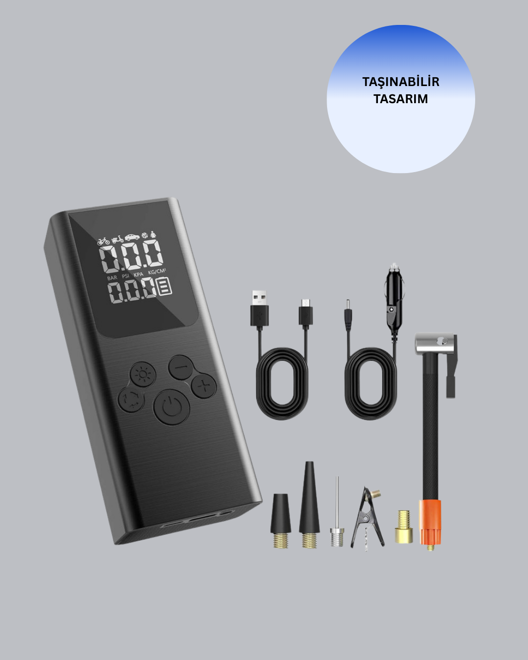 Çok amaçlı dijital hava pompası, araç lastikleri, bisiklet, motosiklet ve spor topları için ideal bir çözümdür. Birden fazla valf adaptörü sayesinde geniş uyumluluk sunar ve farklı ihtiyaçlara cevap verir. Dijital LCD ekran, anlık basınç değerlerini net şekilde gösterir. Hassas ölçüm özelliği ile doğru ve dengeli şişirme yapılmasına yardımcı olur. Otomatik kapanma fonksiyonu, istenilen basınca ulaşıldığında cihazın durmasını sağlar. USB şarj özelliği sayesinde taşınabilir ve pratiktir. 12V destekli yapısı, araç içi kullanımı kolaylaştırır. Kompakt boyutu ile yer kaplamaz. LED aydınlatma özelliği, karanlık ortamlarda güvenli kullanım imkânı sunar. Günlük kullanım ve acil durumlar için uygundur.Ürün Markası: Lisinya