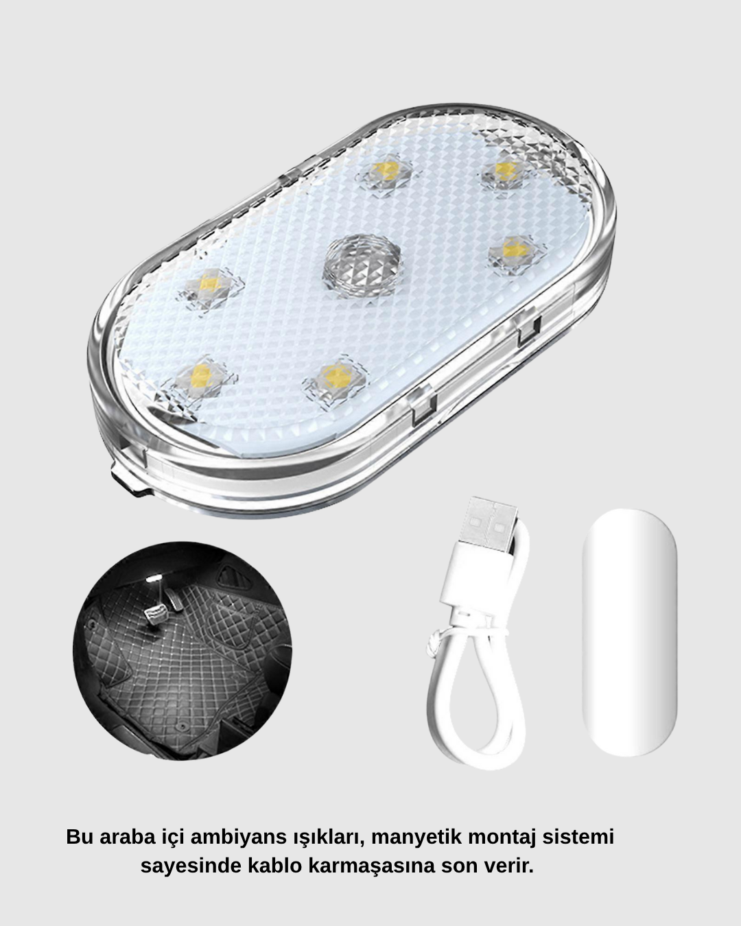 Aracınıza şıklık katmanın en pratik yolu! Manyetik montaj sistemine sahip bu ambiyans LED ışık seti, kablo gerektirmeden kolayca kurulabilir. Işıkları istediğiniz yüzeye manyetik olarak takabilir, dilediğiniz zaman çıkarabilirsiniz. Bu yenilikçi tasarım, aracın içini düzenli ve temiz tutarken, şık bir görünüm kazandırır. Yumuşak ışık efekti sayesinde gece yolculuklarında hem güvenli hem estetik bir ortam oluşturur. Kablo karmaşasını ortadan kaldıran yapısı, montajı sadece birkaç saniyede tamamlamanıza imkan tanır. Ayrıca enerji verimli LED teknolojisi sayesinde uzun ömürlü kullanım sunar. Sade, modern ve etkileyici iç mekan aydınlatması isteyen sürücüler için mükemmel bir seçimdir.Ürün Markası: Lisinya