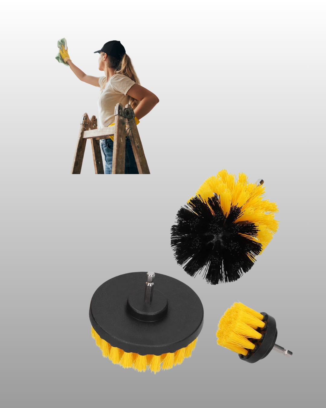 Matkap ucu temizlik aparatı seti, farklı boyutlardaki fırçalarıyla evde ve endüstriyel temizlikte pratik çözümler sunar. Geniş yüzeyler, dar köşeler ve ulaşılması zor alanlar için ayrı fırça başlıkları bulunur. Matkabınıza takarak güçlü ve hızlı bir temizlik yapabilirsiniz. Banyo karoları, fayans derzleri, lavabo, küvet, mutfak zeminleri ve araç jantları için uygundur. Naylon kıllar yumuşak ama dayanıklıdır, yüzeylere zarar vermez. Dayanıklı polipropilen liflerle uzun süreli kullanım sağlar. Ürün Markası: Lisinya
