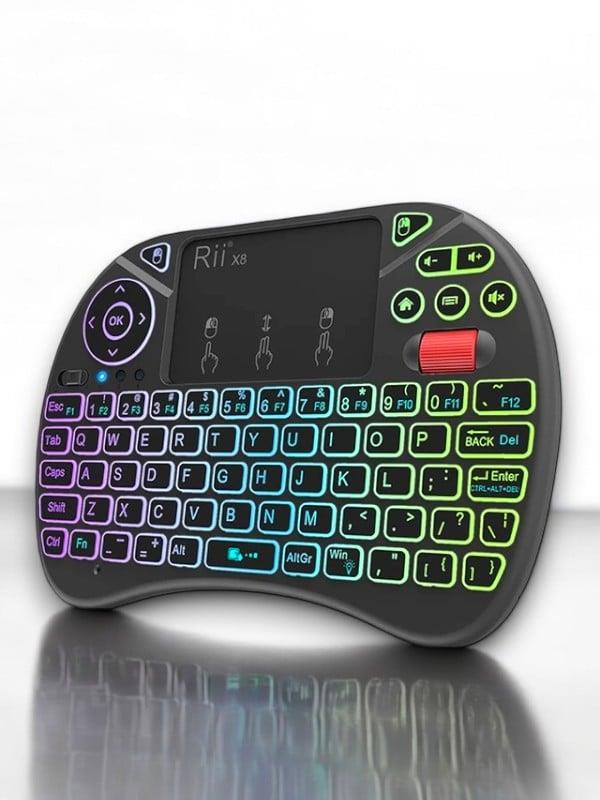 Mini Klavye Işıklı Kablosuz Mini Klavye SmartTV Televizyon PS3 Dokunmatik Mouse Mini Kablosuz Dokunmatik Klavye Mouse 3 Renk olarak klavye ışıklıdır. Işığını açmak için FN + F2 tuşuna basarak renkler arasında geçiş yapabilirsiniz. Bilgisayarınıza, akıllı telefonunuza, tabletinize, televizyonunuza bağlanır. Ufacık boyutu ile yanınızda her yere taşıyabilirsiniz. Kullanımı kolaydır, kaliteli plastikten üretilmiştir. Sadece siyah mevcuttur. 2.4 GHz kablosuz bağlantı ile 10 metreye kadar kullanılabilir. Ürün Pillidir Dahili bataryası içinde mevcuttur. Windows, Android, Mac, Linux destekler PS3, XBOX360 destekler Özellikleri Voltaj: 3.3 V Çalışma akımı: 50mA Frekans: 2.4 GHz Kullanım mesafesi: 10 metreye kadar Ağırlık: 92gr (pilsiz) Boyutları: 14.7x9.8x2cm Kutu İçeriği 1 adet mini klavye 1 adet kullanım klavuzu 1 adet USB verici (klavyenin pil girişinin içindedir.)Kutu İçeriği 1 adet mini klavye 1 adet kullanım klavuzu 1 adet USB verici (klavyenin pil girişinin içindedir.)Ürün Markası: Lisinya