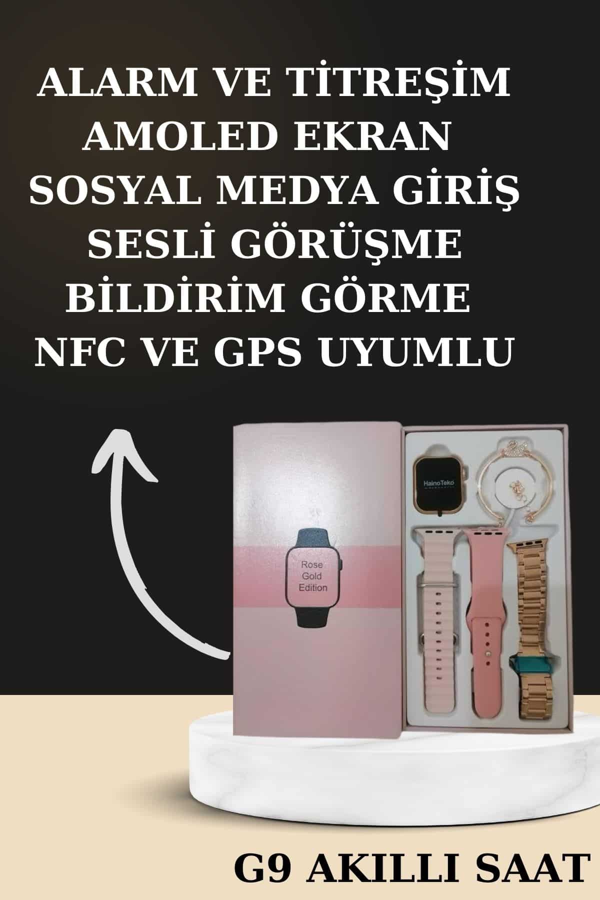 AKILLI SAAT Yeni Nesil Mini Kadın Akıllı Saat, şıklığı ve fonksiyonelliği bir araya getiren tasarımıyla kadınlar için ideal bir seçenek sunuyor. Almanya üretimi ultra dayanıklı model, özel wireless şarj özellikleriyle öne çıkıyor ve Türkçe menüsü sayesinde kullanıcı dostudur. Kutu içeriğinde, mini akıllı saat, 3 farklı kordon, hediye bileklik, wireless şarj kablosu ve kullanım kılavuzu bulunmaktadır. Şık pembe kutusu, hediye olarak tercih edilmesini sağlayan bir özellik taşır. 41 mm kavisli oval kenarlı yeni tasarımı ve 1,70 inç AMOLED ekranı ile yüksek çözünürlükte HD görüntü sağlar. Saat, nabız ölçer, uyku izleyici, kan basıncı, tansiyon, EKG ve vücut sıcaklığı ölçer gibi sağlık izleme özellikleriyle sağlığınızı takip etmenizi sağlar. 117 farklı spor modu ve adım, kalori, kalp ritmi ölçme gibi özellikler ile aktivite takibini oldukça detaylı yapabilirsiniz. Ayrıca akıllı hatırlatıcılar sayesinde su içme ve hareketsizlik gibi hatırlatmalar alabilir, tüm bildirimleri ve mesajları anında saatinizde görebilirsiniz. Bluetooth bağlantısı ile yüksek kaliteli müzik dinleyebilir ve uzaktan fotoğraf çekme özelliği ile fotoğraflarınızı kolayca çekebilirsiniz. Suya dayanıklı yapısı, günlük kullanımda sıklıkla tercih edilmesini sağlar; ancak deniz ve havuz gibi basınçlı suya karşı su geçirmez. Saatin sunduğu diğer özellikler arasında Türkçe ve çoklu dil desteği, saatimi bul, telefonumu bul, alarm, kronometre, hava durumu, hesap makinesi gibi fonksiyonlar bulunur. Kordonu değiştirilebilir, bu sayede kişisel tercihlere göre tasarımı özelleştirilebilir. 24 ay garanti süresi ile kullanıcılarına güvenli bir deneyim sunar. KULAKLIK Kulak içi Bluetooth kulaklık, yüksek ses kalitesi ve stereo etkisi ile müzik ve görüşmelerde üstün bir deneyim sunar. Sadece 1 saatte tamamen şarj olan kablosuz kulaklık, hızlı şarj özelliği sayesinde vakitten tasarruf etmenizi sağlar. Siyah renkli tasarımı ve kulağa tam oturan yumuşak sünger detayları ile konforlu bir kullanım sunarken, 12 metre çalışma mesafesiyle 4 saat boyunca kesintisiz kullanım imkanı tanır. LED ışıklı uyarı sistemi sayesinde düşük pil, bağlantı durumu ve kullanım aşamaları hakkında kırmızı, yeşil ve mavi renklerle kullanıcıyı bilgilendirir. Terlemeye dayanıklı ve su geçirmez yapısı ile günlük aktivitelerinizde rahatlıkla kullanılabilir. Android ve iOS cihazlarla tam uyumlu olan bu kulaklık, açıldığında otomatik olarak bağlanarak kullanımı kolaylaştırır. Mini boyutları sayesinde çanta ve cepte kolayca taşınabilen kulaklık, tuşlu kontrol sistemi ile telefonunuza dokunmadan ses açma-kapama, gelen aramaları yanıtlama ve sonlandırma gibi işlemleri pratik bir şekilde yapmanızı sağlar. Lithium polymer bataryası ile 4 saat boyunca kesintisiz müzik keyfi sunan kulaklık, extra bass ve HD ses desteği ile yüksek kaliteli ses aktarımı gerçekleştirir. Çift mikrofonlu yapısı sayesinde net ve kesintisiz görüşmeler sağlarken, gürültü kesme özelliği sayesinde dış sesleri en aza indirerek daha berrak bir dinleme deneyimi sunar. 3D ses kalitesi ile gecikmeyi önleyerek yüksek performans sergileyen bu model, üstün özellikleriyle kullanıcılarına kaliteli ve konforlu bir kullanım imkanı sunuyor.Ürün Markası: Lisinya