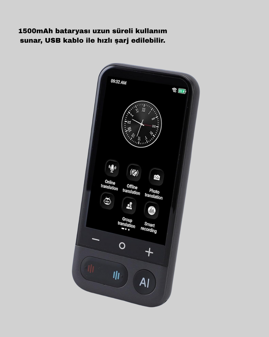 Yabancı diller artık engel değil! Bu taşınabilir sesli çeviri cihazı, dünya genelinde tam 139 dili çevrimiçi, 17 dili ise çevrimdışı olarak destekleyerek, uluslararası iletişimi kolaylaştırır. İş seyahatlerinde, yurt dışı tatillerinde veya eğitimde dil bariyerini ortadan kaldırmak için mükemmel bir çözümdür. 4.0 inç IPS dokunmatik ekranı, kullanıcı dostu bir arayüz sunar. Metin, sesli konuşma, yüz yüze diyalog ve fotoğraf tanıma gibi birden fazla çeviri moduna sahiptir. Yalnızca bir tuşa basarak anında sesli çeviri yapabilir; karşı tarafla doğal bir konuşma akışı sürdürebilirsiniz. Yapay zekâ destekli ses tanıma sistemi, doğru ve hızlı çeviri yaparak iletişimi sorunsuz hale getirir. Ayrıca 1500mAh bataryası uzun süreli kullanım sağlar, USB kablo ile hızlı şarj edilebilir. Alüminyum alaşım gövdesi şık, sağlam ve çizilmelere karşı dayanıklıdır. Android ve iOS uyumluluğu sayesinde kolay bağlantı kurabilir, gerektiğinde telefon üzerinden veri güncellemelerini alabilirsiniz. Kompakt ve hafif tasarımıyla cebinizde veya çantanızda rahatça taşıyabilirsiniz. Gerçek zamanlı çeviri kabiliyetiyle, dünya artık parmaklarınızın ucunda!Ürün Markası: Lisinya
