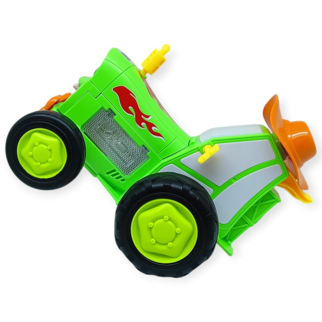 Uzaktan Kumandalı Dans Eden Çılgın Araba - Yeşil Araç 19 x 15 x 13 cm boyutlarındadır. Çılgın araç 3.7V şarjlı bataryaya sahiptir. (Pil ürüne dahildir.) Araç ileri geri sıçarayarak hareket eder. Dik durarak öne doğru gidebilir.Zıpladığında ön kaputu açılır ve kapanır.Gözlerinde ve yan taraflarında ışıklar yanmaktadır. Müzik çalmaktadır. Şapkası kendi kendine hareket etmektedir. Tek tuş ile dans etmeye başlar. Kumanda 2 adet 1,5 V AA pil ile çalışmaktadır.( Piller kutuya dahil değildir.) Paket içerisinde batarya şarj kablosu bulunmaktadır.