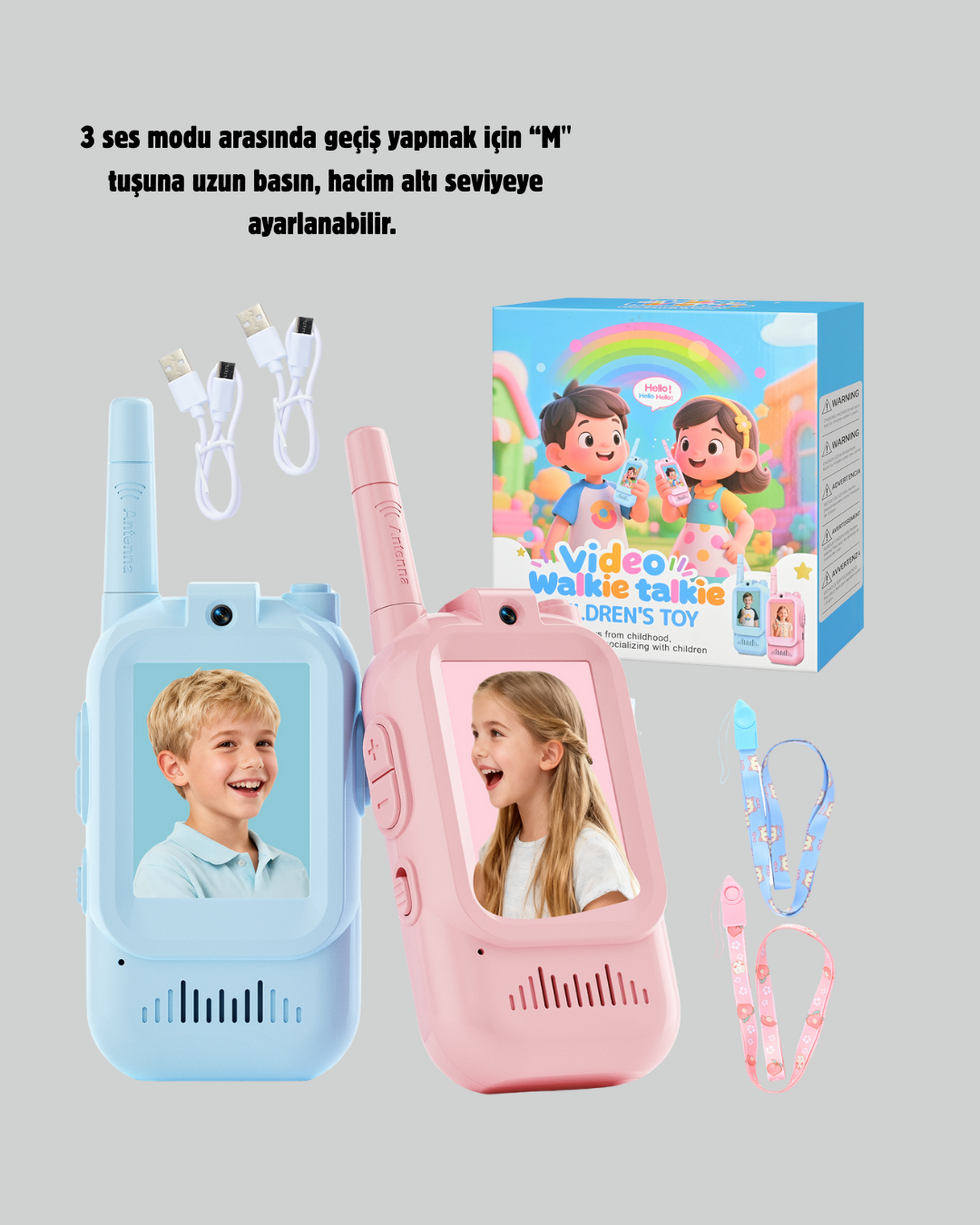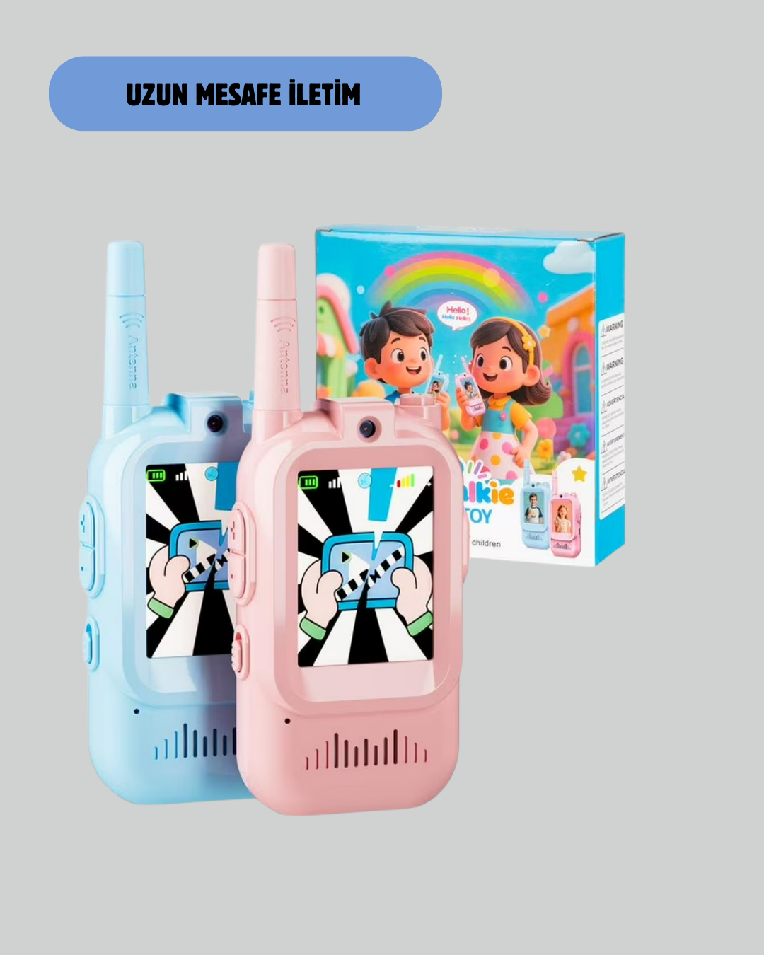 Çocuklar için görüntülü walkie talkie, eğlenceyi ve iletişimi bir araya getirir. Video ve ses desteği sayesinde oyunlar daha etkileşimli hale gelir. Uzun menzili ile açık hava oyunları için idealdir. Basit kontrol sistemi, ergonomik yapı ve net ses iletimi sayesinde çocuklar rahatlıkla kullanabilir. Eğitici ve eğlenceli bir oyuncaktır.Ürün Markası: Lisinya